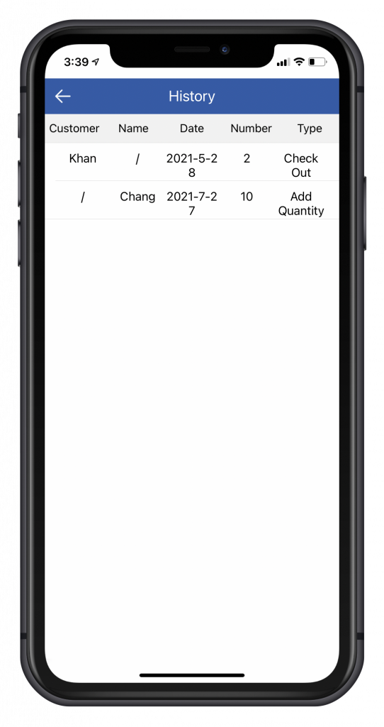 The history page records this item’s all transaction info. “Name” records whether admin or any sub user did this.